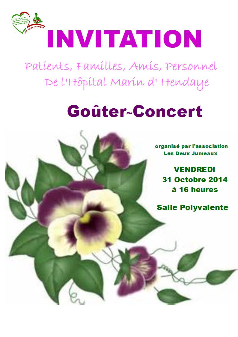 FÊTE DE LA TOUSSAINT Publié le 12/11/2014 par association Les Deux Jumeaux Fin octobre à la salle polyvalente de l’hôpital marin, 45 patients ont pu participer au concert donné par les chanteurs bénévoles du lundi, et apprécier un bon goûter. Partagez! Cliquez pour partager sur Facebook(ouvre dans une nouvelle fenêtre) Facebook