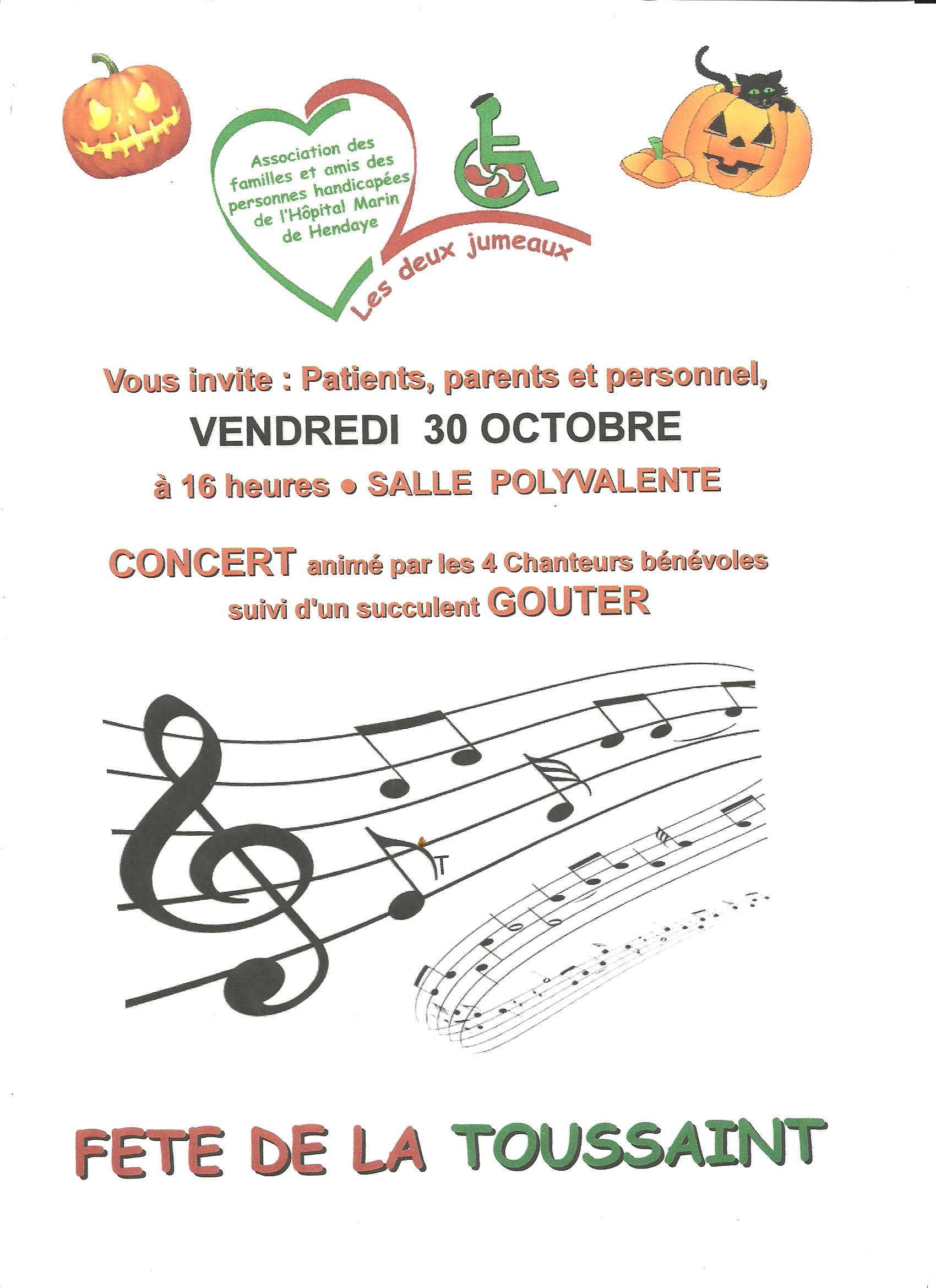 FETE DE LA TOUSSAINT Publié le 26/10/2015 par association Les Deux Jumeaux VENEZ NOMBREUX PASSER UN AGREABLE MOMENT! Partagez! Partager sur Facebook(ouvre dans une nouvelle fenêtre) Facebook
