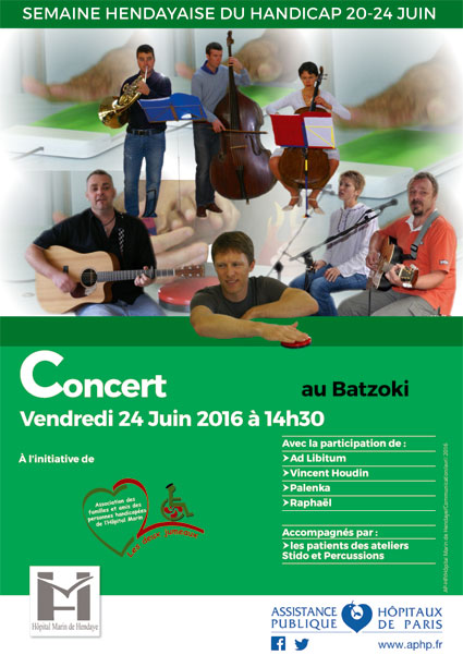 CONCERT A l’HÔPITAL POUR LA FÊTE DE LA MUSIQUE durant la SEMAINE DU HANDICAP Publié le 20/06/2016 par association Les Deux Jumeaux Partagez! Partager sur Facebook(ouvre dans une nouvelle fenêtre) Facebook