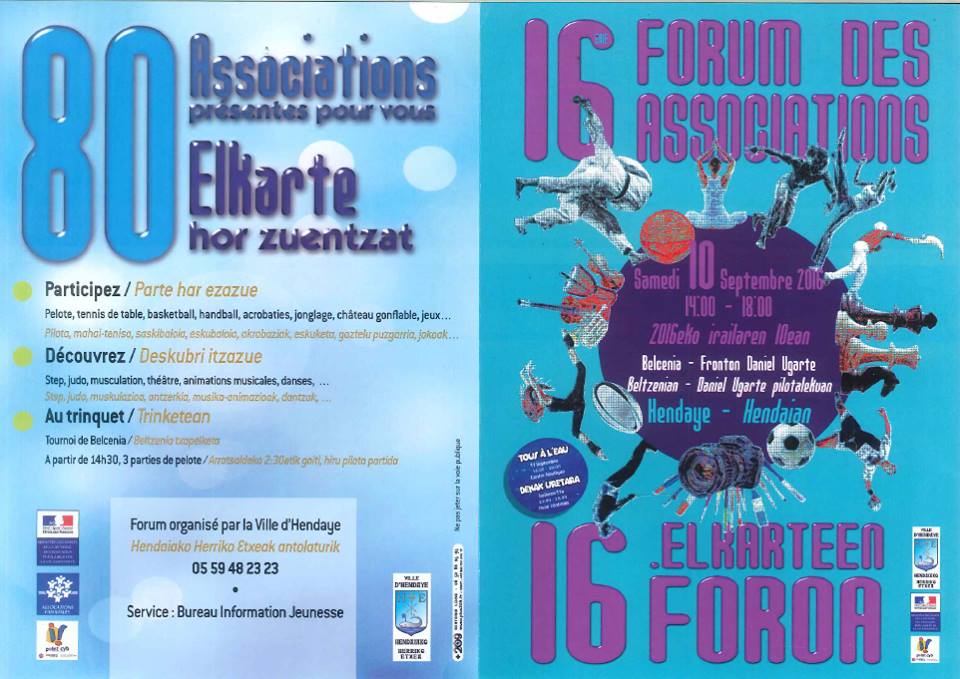 UN STAND DE NOTRE ASSOCIATION AU FORUM DES ASSOCIATIONS Publié le 28/08/2016 par association Les Deux Jumeaux Plusieurs membres du bureau participeront le 10 SEPTEMBRE PROCHAIN au FORUM DES ASSOCIATIONS organisé par la VILLE DE HENDAYE. Partagez! Cliquez pour partager sur Facebook(ouvre dans une nouvelle fenêtre) Facebook