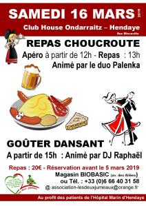 A partir de midi APERITIF puis à 13 heures REPAS « choucroute » animé par le DUO PALENKA.