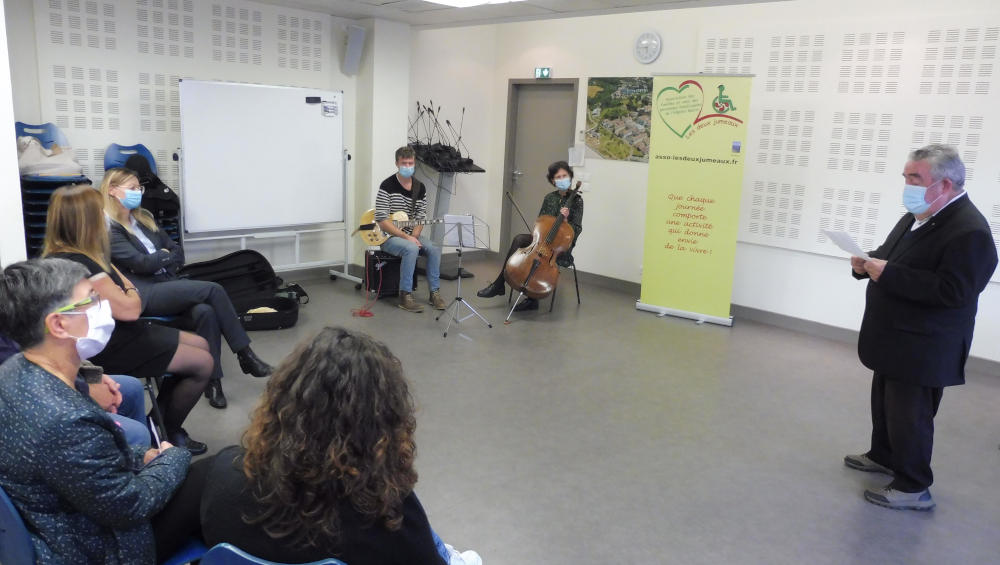 Merci à Rachel et Louis (Ad Libitum), deux des musiciens intervenant à l’hôpital qui ont animé cette chaleureuse réception et témoigné de leur expérience auprès des patients.. Consultez la page de notre site « Animations et intervenants ».