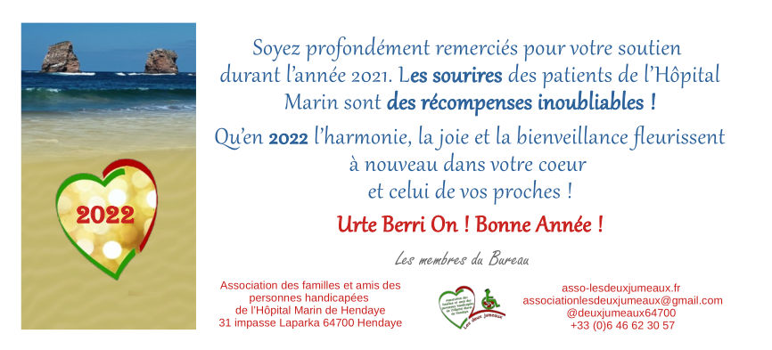 Très belle Année à Vous ! Publié le 24/01/2022 par association Les Deux Jumeaux a Partagez! Cliquez pour partager sur Facebook(ouvre dans une nouvelle fenêtre) Facebook